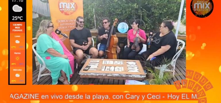 Asi es, en el living playero con el trio de cuerdas compuesto por Liz y su violín, Peppe «Chelo» con...